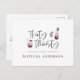 Thirty and thirsty 30th birthday party postcard invitation. Featuring elegant watercolor illustrations of cocktails, wine, rose, gin, in beautiful plum purple, greys and greens. A great fun design to celebrate your milestone.