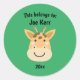 This Belongs to Back to School Cute Giraffe Green Classic Round Sticker