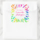 These are exactly as described: square, 3”, glossy stickers. I did not peel any off because they are a gift. The rainbow colors and pattern of brush marks are very pretty. I think my 10 year old niece will love them. Reproduced like the image on screen. 1/8” bleed outside of sticker edge.