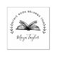 Modern circular lettering script calligraphy name with book greenery rubber stamp.