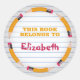 Ruled paper background with a circular frame made of yellow pencils, personalised sticker reads 'This Book Belongs to' in lettering matching the pencils colour. Custom name in handwritten look lettering in the colour of the eraser. Click Customise option to change text colours, size, and font styles.