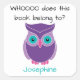 This Book Belongs To Personalized Purple Owl Kids Square Sticker