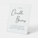 Set aside a space on the table for this special memorial pedestal sign at your wedding. It has simple and elegant styling with a white background and black text. Modern handwritten script stylishly spells out "Candle Burns" with other text than can be personalized or ordered as written.