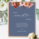 Honour your loved ones who passed on with this elegant "this candle burns" in loving memory wedding sign. Design with modern handwritten calligraphy details and a beautiful floral border with flowers in burgundy, blush, pink, peach, champagne, and yellow tones. Attractive blue background colour. Personalize it with the couple's names, and you also have the option to customize the message as you like. 10" x 8" is only our default size, the sign is available in many sizes.