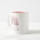 Cute watercolor multi-pink rainbow with the quote "This Mug Is A Hug From Me To You" in a fun modern calligraphy script. Great keepsake and gift idea for "her" for all special occasions, including the seasonal holidays.