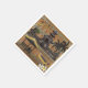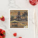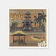 Package of 50 white paper cocktail napkins with images representing the essence of Balinese life on an intricate charcoal, brown, and orange background. See matching cloth napkin, kitchen towel, cloth placemat, paper placemat and coasters. See the entire Bali Retreat Napkin collection in the FOOD/BEV | Linens collection.