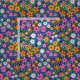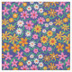 This is beautiful retro boho flowers pattern in pink, orange, yellow and white with branches and green leaves on navy blue background.