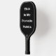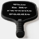 Pickleball Paddle printed with This Is My Favourite Pickleball Paddle with light grey silver text typography phrase on a black background colour by TheFabricSeal print on demand shop at Zazzle.com #ZazzleMade https://www.zazzle.com/store/thefabricseal TheFabricSeal©️Original.