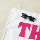 NewParkLane - Cute soft pink beach towel, with 'This is My Happy Place' quote in a fun sixties / hippie typography in three different colours. You can change the colours to any colour you like.