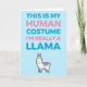 'This is my human costume, I'm really a llama' fun quote with a llama illustration.