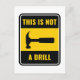 This Is Not a Drill Hammer funny tool word pun postcard with a yellow/ black safety sign and pun text slogan: "This Is Not a Drill". A unique funny construction card for your friends working in construction and hammers or other tools users.