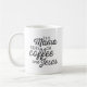 This cute mug for caffeine-loving moms features the quote "this mama runs on coffee and Jesus" in black vintage distressed script lettering. A funny and modern Christian design for busy mothers.
