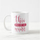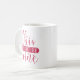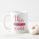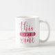 Funny this might be wine coffee mug in dark pink script font with cute tiny heart embellishments.