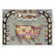 Map of the United States featuring a pork dish for each state and illustrations depicting legal disputes over pigs. Illustration, c1876.