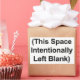 A sheet of four stickers, 4.5 inches wide x 2.7 inches high with the words "This Space Intentionally Left Blank" in parentheses on each.
