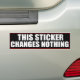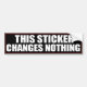 This Sticker Changes Nothing Bumper Sticker: anti change liberal progressive democrat democratic republican mccain barack obama sarah palin election elect vote for go voting president presidential misanthrope misanthropic cynic cynical cynicism negative proud pride america american us united states question government communism socialism arab arabic world worldly affairs politics political stupid silly fun funny humour humourous joke joking jokes satire spoof stickers