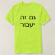 "This Too Shall Pass" in Hebrew. Considering a Hebrew tattoo? Get the t-shirt instead! 100% correct Hebrew on your t-shirt, guaranteed by a native Hebrew speaker.