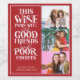 Fun and modern customizable wine label to celebrate friendship with your besties at birthdays, bridal showers, Christmas, graduation parties, or any other special event. This wine label features the wording "This wine pairs well with good friends and poor choices" in white trendy fonts and is personalizable with 3 of your favourite photos and your names.
