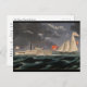 Two famous vessels by a leading New York-based painter of steamboats and sailing vessels on the New York City waterways. Thomas Hunt is rendered in the draftsman style of James Bard. The white vessel with a black-painted smokestack is ornamented with carved paddlebox lunette, a gilded pilot house eagle, a flag on the bow mast "T.H.," a larger flag from the stern reads "Thomas Hunt," The vessel, sailing in a choppy sea, is heading toward a coastline that may depict the Highlands of the Navesink.