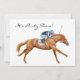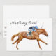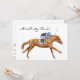 Original fine art design of a Thoroughbred horse by designer Carolyn McFann of Two Purring Cats Studio on a customizable invitation for equestrian sport fans.
