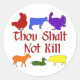 A rainbow of farm animals with the words "Thou shalt not kill" remind us that no matter what we call it, meat is dead food and we killed it. Peace does NOT grow from violence.