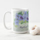 Start your day with a touch of beauty and sentiment. This elegant ceramic mug features a delicate banner of hand-painted purple watercolor violets at the top, framing the heartfelt phrase: My thoughts are occupied with love.