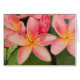 Print of a coloured pencil drawing of plumeria flowers.