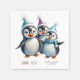 Three adorable penguins stand in festive winter hats and colourful scarves. Their big, round eyes shine with joy, while their fluffy white bellies contrast with the bright blue Christmas tree decorated with twinkling lights. The penguins smile happily and seem ready to celebrate the magic of the holiday season. All around them, delicate snowflakes dance through the air, while twinkling stars shine in the sky, creating a warm, festive atmosphere. This design perfectly captures the spirit of Christmas - full of joy, friendship and winter wonder!