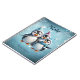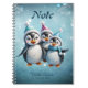 Three adorable penguins stand in festive winter hats and colourful scarves. Their big, round eyes shine with joy, while their fluffy white bellies contrast with the bright blue Christmas tree decorated with twinkling lights. The penguins smile happily and seem ready to celebrate the magic of the holiday season. All around them, delicate snowflakes dance through the air, while twinkling stars shine in the sky, creating a warm, festive atmosphere. This design perfectly captures the spirit of Christmas - full of joy, friendship and winter wonder!