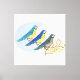 Three birds of different colour schemes with a tree branch in a simple boho style.