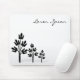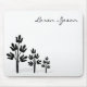 A stylish modern mouse pad template with a 3d effect motif depicting three stylized trees shadowed onto a light grey to white toned background, giving a landscape like effect