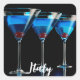 Three blue cocktails with cherry on black square sticker