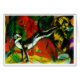 Beautiful and brightly coloured oil on canvas painting by German artist Franz Marc entitled, "Three Cats". The cat in the foreground is black and white, standing on its front paws with back legs in the air, while one yellow cat and a large red cat are in the background. Wonderful combination of reds, greens, yellows and purple. Completion date: 1913.