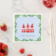 Three Christmas Gnomes & Leaf Frame on Light Blue Napkin