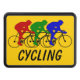 Three cyclists in green, red, and blue. The background is transparent so you can change the colour.