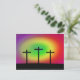 Three crosses silhouetted in black against a glowing colourful background. Ideal as general Christian theme or for Easter especially.
