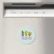 A thank you magnet with a whimsical illustration featuring 3 happy little cacti sitting in their own flower pots. They each have their own unique expressions smiling and looking happy. Mint green polka dot background.