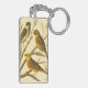 Artist W. Rutledge captured perfectly the vivid colours of those domestic birds. Get this simple yet beautifully realistic painting. Side view of two yellow birds and one darker bird on a branch and looking in different directions.