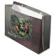 Three fairies, the companions of the magic heart. The centerpiece is the middle fairy, whose vibrant green hair gently blows in the wind and is accentuated by elegant golden horns. Her pointed ears protrude proudly, while she is dressed in elaborate green clothing decorated with intricate patterns that enhance her graceful appearance. The two little fairies are dressed in similarly intricately designed green robes adorned with fine details.