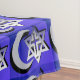 This religious tablecloth is patterned with interfaith symbols including crescent moons, crosses, and Stars of David as a reminder of the faith connections among Christians, Jews, and Muslims.
