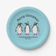Three Festive Christmas Penguins With Custom Text Paper Plate