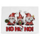 Cute "HO HO HO!" large Christmas gift bag featuring three charming holiday gnomes in red patterned hats—one with a wreath, one with a present, and one with a sparkler. Perfect for wrapping gifts for kids, friends, and family. Ideal for holiday parties and gnome lovers. Durable white paper bag with handles.