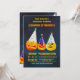 Get ready to party with this Halloween-themed birthday party invitation! Set against a dark blue gradient background, these orange pumpkins are all dressed up in their party hats, each with a unique expression. The first jack-o-lantern grins from ear to ear, sporting a yellow polka-dotted party hat. The second jack-o-lantern wears a mischievous grin and a purple and pink zigzag-patterned hat. The third jack-o-lantern looks a little down, but still joins in the fun with its white polka-dotted hat. All the party hats are topped with pom-poms, adding to the festive atmosphere.