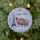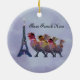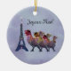 Graphic illustration of Three French Hens at the Eiffel Tower for the holidays. Brighten up the season with this Christmas theme ornament.