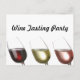 Three Glasses of Wine post card invitation, red, white, and "pink", add your own text to customize for wine tasting party, wine event, or any other use.