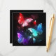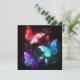 Three luminous, red, purple, green, textured, night butterflies on black luminous background.