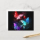 Three luminous, red, purple, green, textured, night butterflies on black luminous background.
