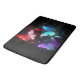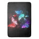 Three luminous, red, purple, green, textured, night butterflies on black luminous background.