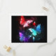 Three luminous, red, purple, green, textured, night butterflies on black luminous background.