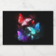 Three luminous, red, purple, green, textured, night butterflies on black luminous background.